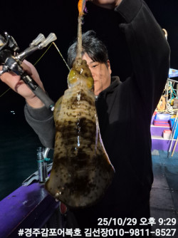 11/1일 토요일 무늬어복호 출조실시간 조황보고입니다.날씨는 포근하고 조류와 바람이 적당하여 낚시하기에 딱좋은 날씨입니다.첫포인트에서 이동하여 둘째포인트에서 키로오바급을 포함하여 덩어리들이 올라와주네요! 전원다 키로급을 잡았으면하는 선장의 바램입니다.올해 신기록 1,655g 올라왔어요!계속해서 키로오바급 980,850,830등등 계속해서 올라와 주었습니다.그리고 새벽에도 계속해서 재미있게 잘올라와 주었네요!일요일 오늘은 기상악화로 출항이 불가능하겠네요!월요일은 무늬어복호 출조합니다 시간되시는분 무늬어복호로 놀러오세요!감사합니다. #경주어복호무늬오징어낚시*** 경주 어복호 예약 안내 ***예약문의 : 010-9811-8527오시는길 : 경북 경주시 감포읍 감포로2길 93 앞부두홈페이지 : http://eobokho.sunsang24.com/