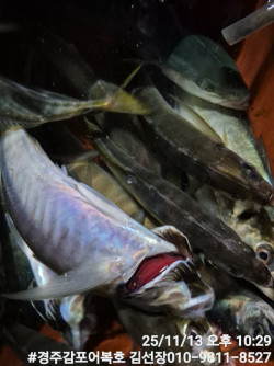 11/15일 토요일 슈퍼전갱이 사냥중 실시간 조황보고입니다.오늘도 슈퍼전갱이들이 얼굴을 잘보여주네요!간간히 삼치도 같이 올라와 주네요!오늘도 만쿨조황으로 마무리 되었습니다.오늘은 집어가 늦게 이루어져서 다소늦게 피딩타임이 이어졌네요!그래도 가실때 쿨러무겁게 보내드리게되서 선장으로서 마음은 좋습니다.내일도 주간은 삼치한타임 출항07시 입항12시 5시간 5만원입니다.야간은 슈퍼전갱이 출항18시 입항23시 5시간 7만원입니다.귀하를 어복호로 초대합니다!어복호로 놀러오세요!#경주감포어복호선상낚시 #경주감포어복호대삼치낚시 #경주감포어복호슈퍼전갱이낚시*** 경주 어복호 예약 안내 ***예약문의 : 010-9811-8527오시는길 : 경북 경주시 감포읍 감포로2길 93 앞부두홈페이지 : http://eobokho.sunsang24.com/