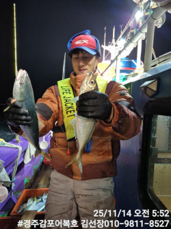 11/14일 금요일 저녁 슈퍼전갱이 왕고등어 야간집어낚시 다녀왔습니다.13일에 남겨두었던 고마운 고기들이 그자리에 그대로 머물러 주었네요!그래서 재미있게 많이잡고 거기에다 더으로 대삼치 4마리까지 잡고 입항하였습니다.전문적으로 캐스팅하면 대삼치를 많이 잡을수가 있겠네요!시간되시는분 어복호로 놀러오세요!감사합니다. #경주감포어복호대삼치낚시 #경주감포어복호왕고등어낚시 #경주감포어복호슈퍼전갱이낚시 #경주감포어복호방어낚시*** 경주 어복호 예약 안내 ***예약문의 : 010-9811-8527오시는길 : 경북 경주시 감포읍 감포로2길 93 앞부두홈페이지 : http://eobokho.sunsang24.com/