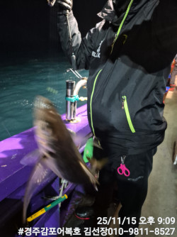 11/18일 화요일 어복호 야간집어대전갱낚시 출항합니다.금일저녁부터 날씨가 좋아지네요!겨울이 오기전 늦가을의 경주앞바다의 정취를 어복호와함께 즐겨보세요!대전갱이 왕고등어 방어 삼치 다들 잘올라오고 있습니다!시간되시는분 어복호로 놀러오세요!출항18시 입항23시 5시간 7만원입니다.감사합니다.#경주감포어복호선상낚시 #경주감포어복호대삼치낚시 #경주감포어복호왕고등어낚시 #경주감포어복호슈퍼전갱이낚시 #경주감포어복호방어낚시*** 경주 어복호 예약 안내 ***예약문의 : 010-9811-8527오시는길 : 경북 경주시 감포읍 감포로2길 93 앞부두홈페이지 : http://eobokho.sunsang24.com/
