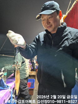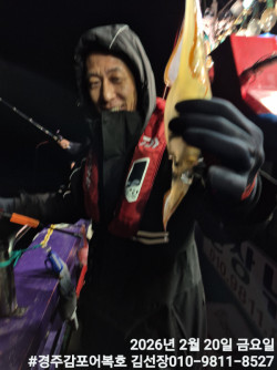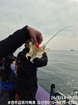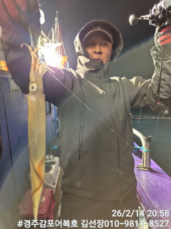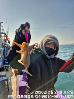 2/14일 토요일 즐거운 왕쭈구미낚시 마쳤습니다.여전히 어군들이 많이 모여있네요!연휴 끝나고 다시와서 잡아도 문제 없겠어요!2/19일 목요일부터 쭈구미 잡으러 놀러오세요!#경주감포