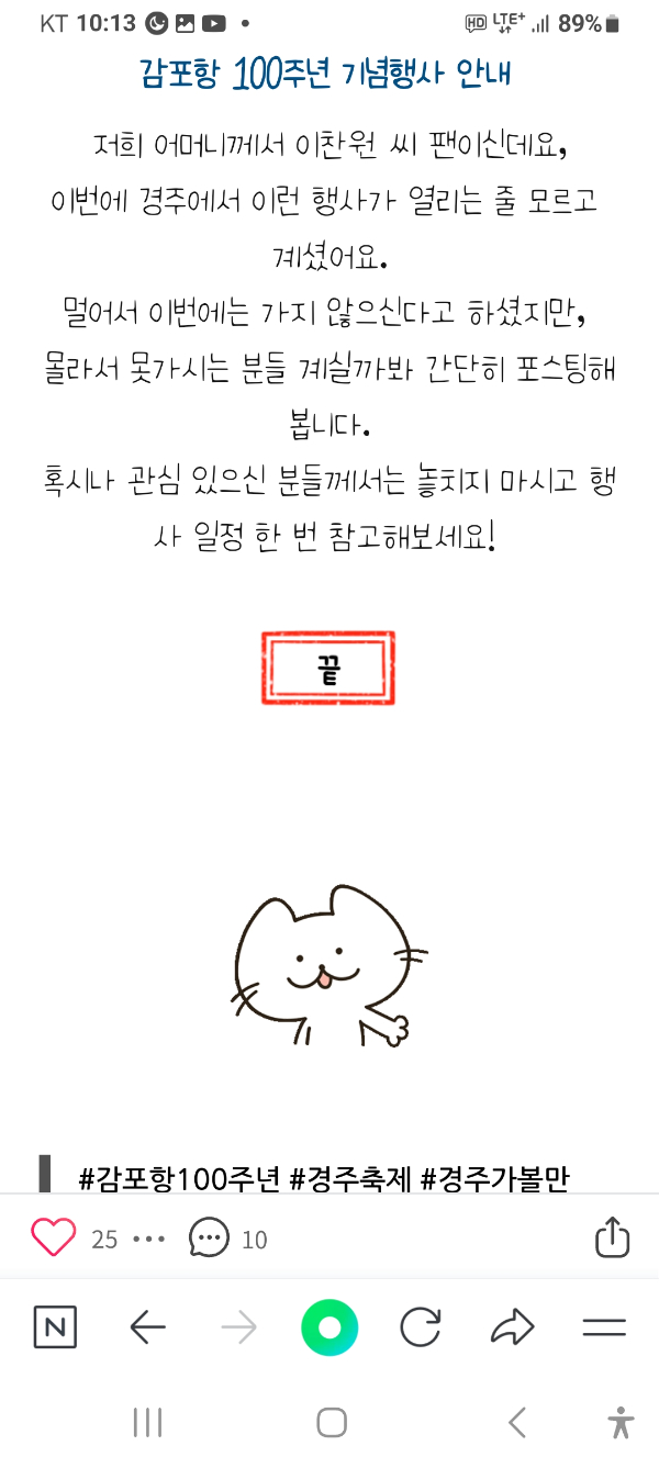 ![]() ![]() ![]() ![]() ![]() ![]() ![]() ![]() ![]() ![]() ![]() ![]() ![]() ![]() ![]() ![]() ![]() ![]() ![]() ![]() 어복호회원 여러분 안녕하십니까? 다음주 25일 금요일부터 28일 월요일까지 감포항개항 100주년 기념행사를 저희 어복호 정박지 바로옆에서 한다고 합니다. 시간되시는분 놀러오셔서 낚시도하고 행사도 구경하시고 봄나들이겸 경주감포어복호로 오세요! #경주감포어복호선상낚시 #감포항100주년기념행사 #경주배낚시 #감포배낚시 #생활낚시 #바다낚시체험 #선상체험 #배낚시체험 #선상낚시체험 #경주생활낚시 #감포도다리낚시 *** 경주 어복호 예약 안내 *** 예약문의 : 010-9811-8527 홈페이지 : http://eobokho.sunsang24.com/