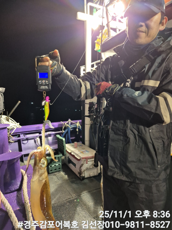 ![]() ![]() ![]() ![]() ![]() ![]() ![]() ![]() ![]() ![]() ![]() ![]() ![]() ![]() ![]() ![]() ![]() ![]() ![]() ![]() 11/1일 토요일 무늬어복호 출조실시간 조황보고입니다. 날씨는 포근하고 조류와 바람이 적당하여 낚시하기에 딱좋은 날씨입니다. 첫포인트에서 이동하여 둘째포인트에서 키로오바급을 포함하여 덩어리들이 올라와주네요! 전원다 키로급을 잡았으면하는 선장의 바램입니다. 올해 신기록 1,655g 올라왔어요! 계속해서 키로오바급 980,850,830등등 계속해서 올라와 주었습니다. 그리고 새벽에도 계속해서 재미있게 잘올라와 주었네요! 일요일 오늘은 기상악화로 출항이 불가능하겠네요! 월요일은 무늬어복호 출조합니다 시간되시는분 무늬어복호로 놀러오세요! 감사합니다. #경주어복호무늬오징어낚시 *** 경주 어복호 예약 안내 *** 예약문의 : 010-9811-8527 홈페이지 : http://eobokho.sunsang24.com/