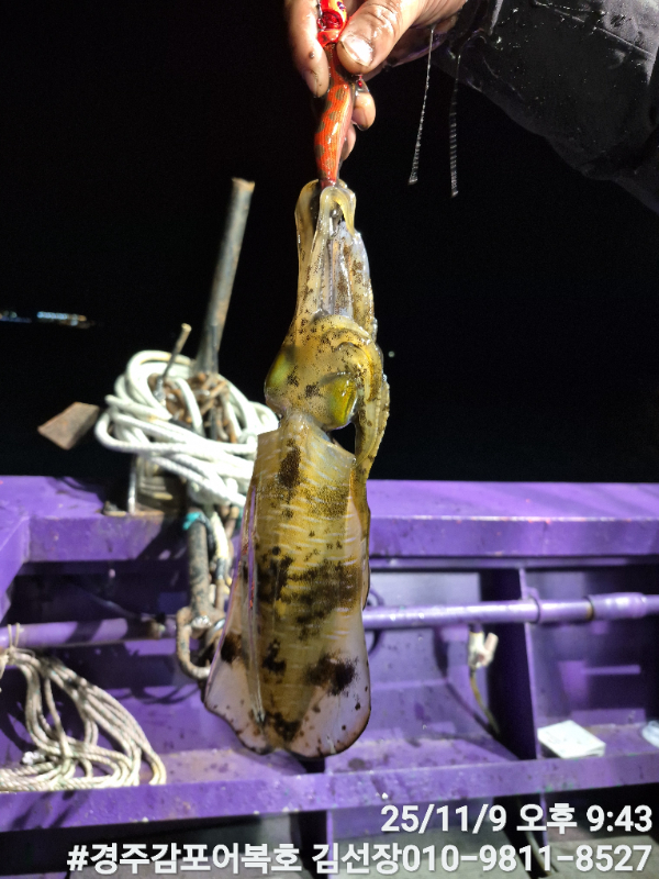 ![]() ![]() ![]() ![]() ![]() ![]() ![]() ![]() 11/9일 일요일 무늬어복호 실시간조황 보고입니다. 서풍이 강하게 불고있어요! 그런데 파도는 없어요! 낚시하기에는 나쁘지 않습니다! 무늬오징어 계체수가 엄청나게 많이 줄어들었네요! 오늘은 키로오바급 대물들이 얼굴을 안보여 주네요! 거의다가400g~600g 정도되는 무늬들만 올라왔어요! 마리수도 많이 아쉽네요! 내일은 기상이 좋지않아서 하루쉬고 2~3일 정도 더해보고 25년 무늬시즌 마무리를 해야될것 같습니다. 늦은밤까지 고생하셨어요!감사합니다. #경주어복호무늬오징어낚시 *** 경주 어복호 예약 안내 *** 예약문의 : 010-9811-8527 홈페이지 : http://eobokho.sunsang24.com/
