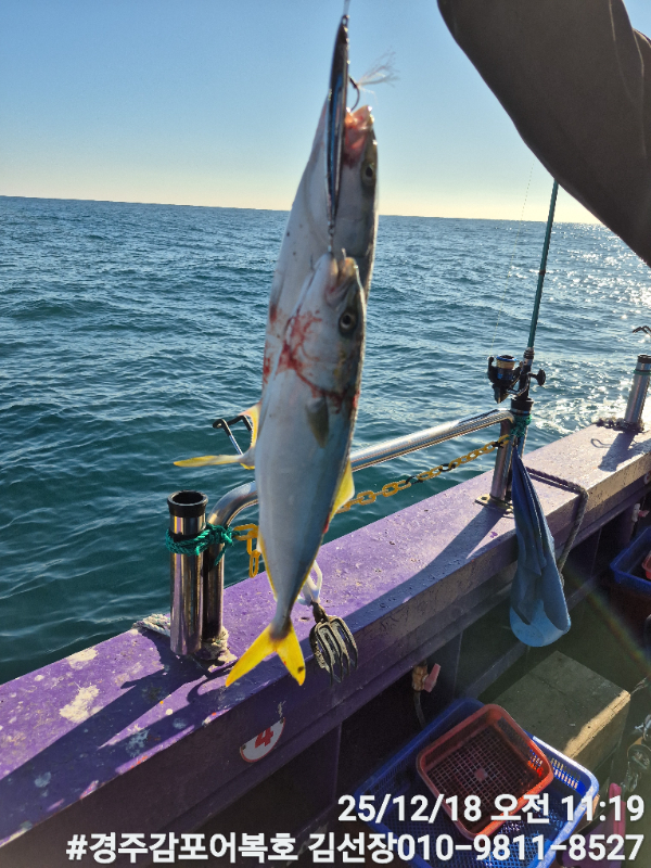 ![]() ![]() ![]() ![]() ![]() ![]() ![]() ![]() ![]() 12/18일 목요일 삼치 방어낚시 다녀왔습니다. 날씨가 포근하여 낚시하기에 아주좋은 날씨였습니다. 그런데 이제 수온이 많이 내려가서인지 어군들은 많이 보이는데 반응들이 영시원하지를 않네요! 내일과 모래 토요일까지 도전해보고 어종을 변경하든지 결정을 내리도록 하겠습니다. 내일도 같은시간 오전 10시에 출항합니다. 시간되시는분 어복호로 놀러오세요! #경주감포어복호선상낚시 #경주감포어복호대삼치낚시 #경주감포어복호방어낚시 *** 경주 어복호 예약 안내 *** 예약문의 : 010-9811-8527 홈페이지 : http://eobokho.sunsang24.com/