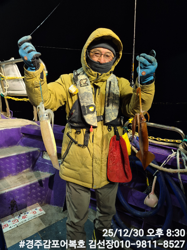 ![]() ![]() ![]() ![]() ![]() ![]() ![]() ![]() ![]() ![]() ![]() ![]() ![]() ![]() ![]() ![]() ![]() ![]() ![]() 12/30일 화요일 18시35분 왕오징어 첫수했습니다! 구경들해보세요! 2번째 3번째 왕오징어도 잘올라 오네요! 20시가 넘어서면서 집어가 서서히 완성되더니 여기저기서 얼굴들을 보여주네요! 그런데 강한서풍이 동반되어 몹시 추워서 힘든 낚시를하고 들어왔어요! 몇일뒤 바람이 없고 포근한날 2차 탐사 진행합니다. 조금 아쉬움이 남는 1차 탐사였습니다. 추운날씨에 대단히 고생하셨어요! #경주어복호왕오징어낚시 *** 경주 어복호 예약 안내 *** 예약문의 : 010-9811-8527 홈페이지 : http://eobokho.sunsang24.com/
