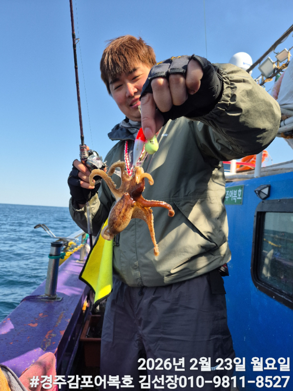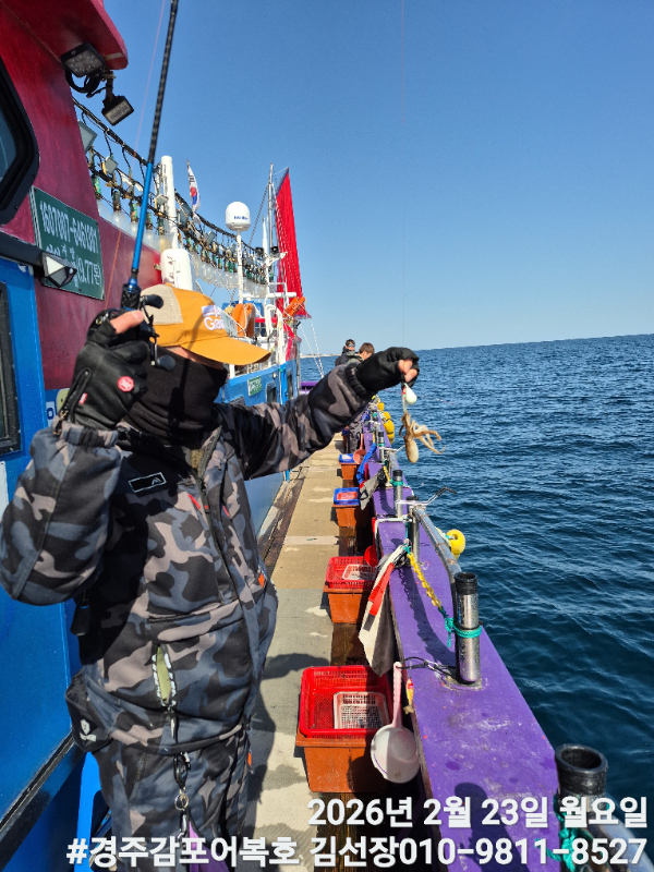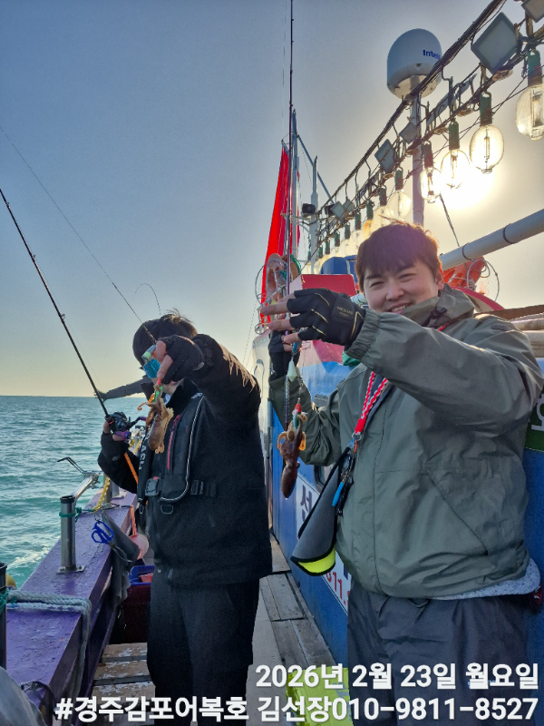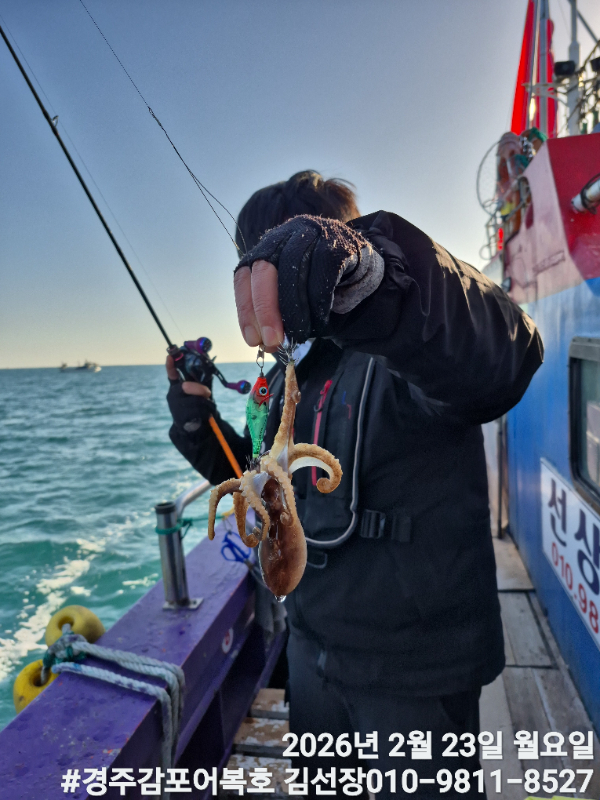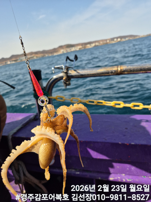 ![]() ![]() ![]() ![]() ![]() ![]() ![]() ![]() ![]() ![]() ![]() ![]() ![]() ![]() ![]() ![]() ![]() ![]() ![]() ![]() 2/23일 월요일 왕쭈구미 낚시중입니다. 오늘도 포인트에 도착하자마자 잘올라옵니다. 수박 수평에기와 고추장에기에 반응이 월등하네요! 조금전 왕쭈구미 낚시를 마치고 감포항으로 입항중입니다. 오늘도 역시나 대박조황보이고 왕쭈구미 많이잡고 손맛 실컷봤습니다. 다들 많이 잡으셨는데 그중에 한분께서 72수정도 되신다고 말씀 하시네요! 내일은 주간까지는 날씨가 좋네요! 내일오전 왕쭈구미 낚시를 가실분 연락주세요! 감사합니다. #경주감포어복호왕쭈구미낚시 *** 경주 어복호 예약 안내 *** 예약문의 : 010-9811-8527 홈페이지 : http://eobokho.sunsang24.com/